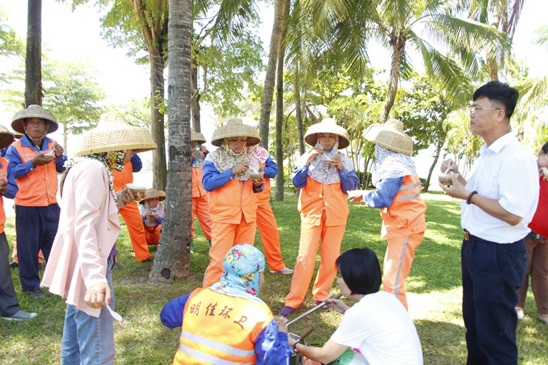 在鳳凰路一中路段、海虹廣場等地,正在清掃保潔作業(yè)的員工們頂著烈日,堅守一線,為城市的干凈整潔不停歇地忙碌著。工會主席高斐斐表示,在這么炎熱的天氣下,員工們依舊堅守在城市的大街小巷揮灑著汗水,十分辛苦。她叮囑員工們在保證工作質(zhì)量的同時,要科學調(diào)整作息時間,合理安排勞動生產(chǎn),確保在高溫天氣下作業(yè)安全。勉勵大家繼續(xù)發(fā)揚明佳精神,為創(chuàng)造更加整潔、舒適、優(yōu)美的城市人居環(huán)境和“創(chuàng)文鞏衛(wèi)”工作作出更大貢獻。