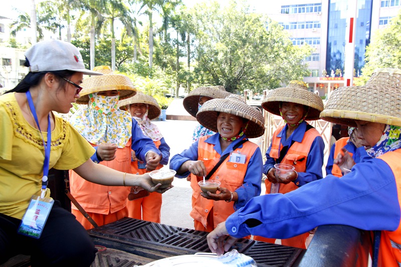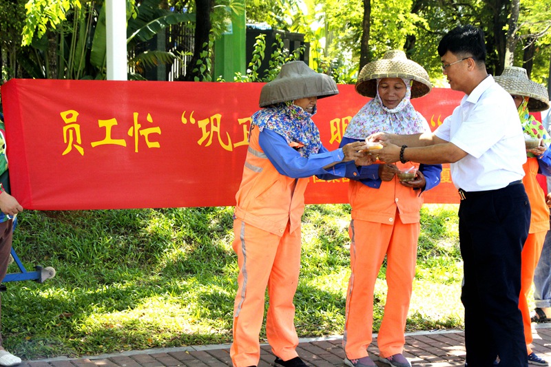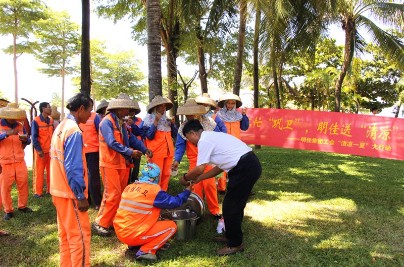 7月3日,集團公司主席工會主席高斐斐率慰問組一行,到鳳凰路一中路段、海虹廣場等地為正在高溫下作業(yè)的員工送去降溫解暑的綠豆湯,送上公司以及工會組織的關懷和問候。