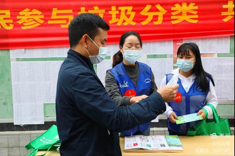 現(xiàn)場(chǎng)分發(fā)垃圾分類(lèi)指引圖冊(cè)、面對(duì)面講解
