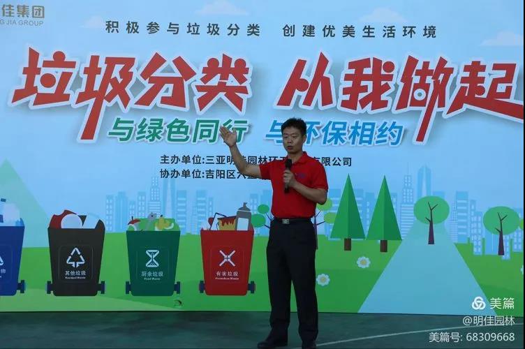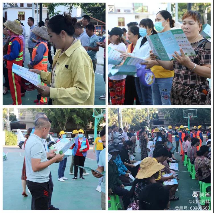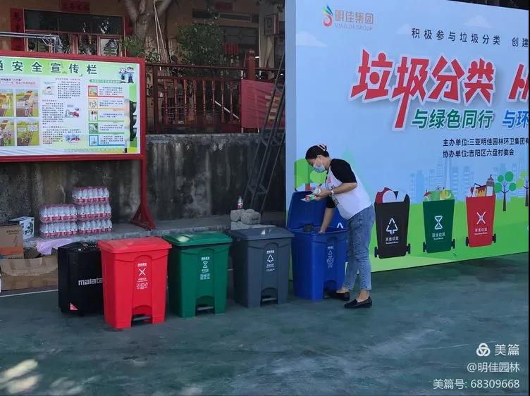 為了增加居民對(duì)垃圾分類的了解,養(yǎng)成垃圾分類的好習(xí)慣,助力三亞創(chuàng)建全國文明城市。2021年11月19日上午明佳集團(tuán)黨支部、工會(huì)、婦聯(lián)及共青團(tuán)在三亞市吉陽區(qū)六盤村聯(lián)合組織開展了主題為“垃圾分類,從我做起”的垃圾分類宣傳活動(dòng),倡導(dǎo)“與綠色同行,與環(huán)保相約”的生活方式,讓垃圾分類進(jìn)一步融入居民的生活。明佳集團(tuán)副總裁、總助、黨建辦主任、婦聯(lián)主席、工會(huì)主席及共青團(tuán)書記出席了本次活動(dòng)。