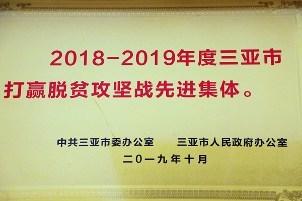 明佳集團(tuán)榮獲“2018-2019年度三亞打贏脫貧攻堅(jiān)先進(jìn)集體”稱號